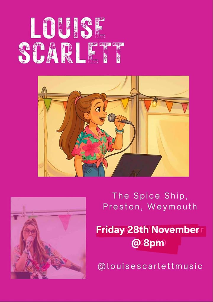 Friday 28th November, Louise Scarlett is joining us for the evening from 8pm!